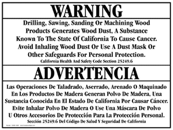 It wasn’t a label telling me that this solid wood vanity was pricey (I already knew that) or that I should read completely the instructions on how to install it (I didn’t do that). No, it was a warning sticker telling me that the state of California determined that “drilling, sanding, or machining wood products generates wood dust, a substance known to the state of California to cause cancer…”. Really. Has anyone warned Norm Abram at the New Yankee Workshop?!?